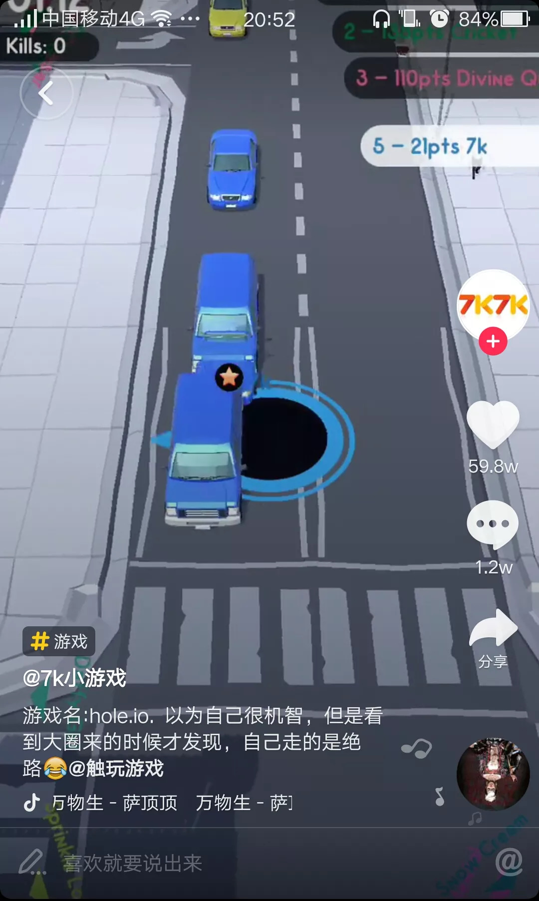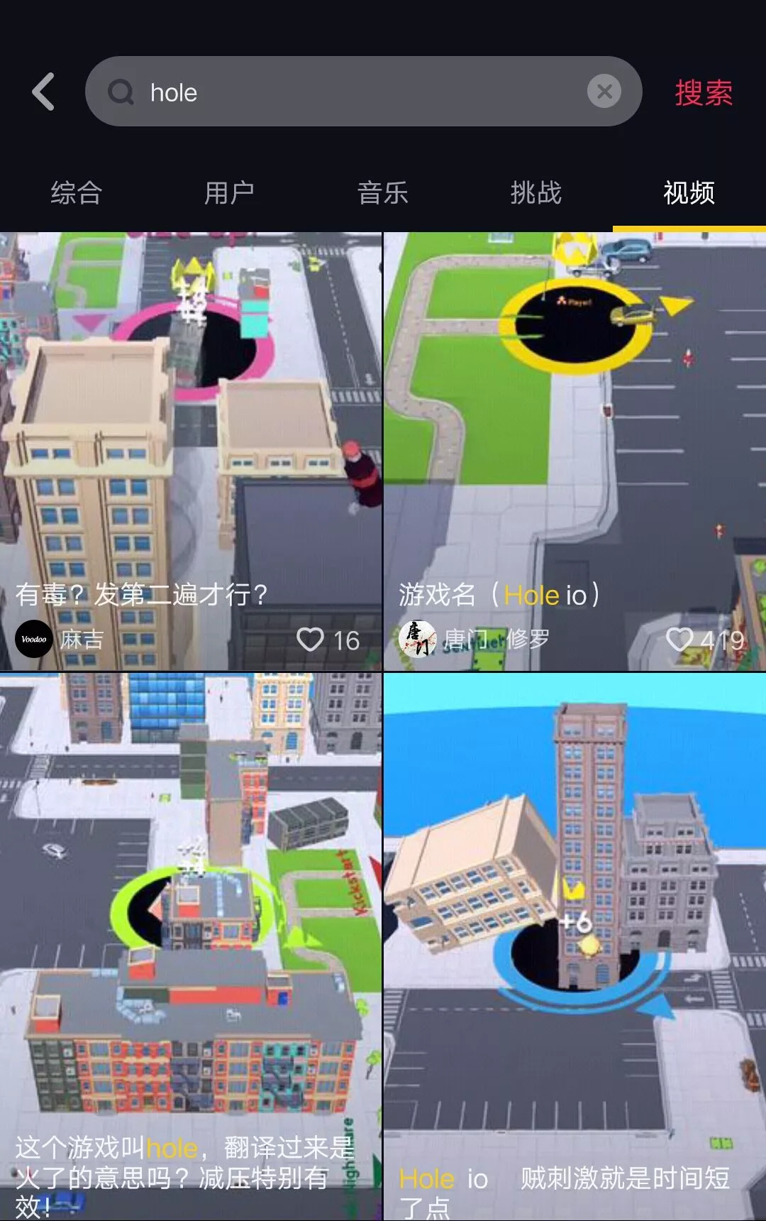 不过如果具体说到《Hole.io》在国内市场的爆红,还离不开抖音这个短视频平台。