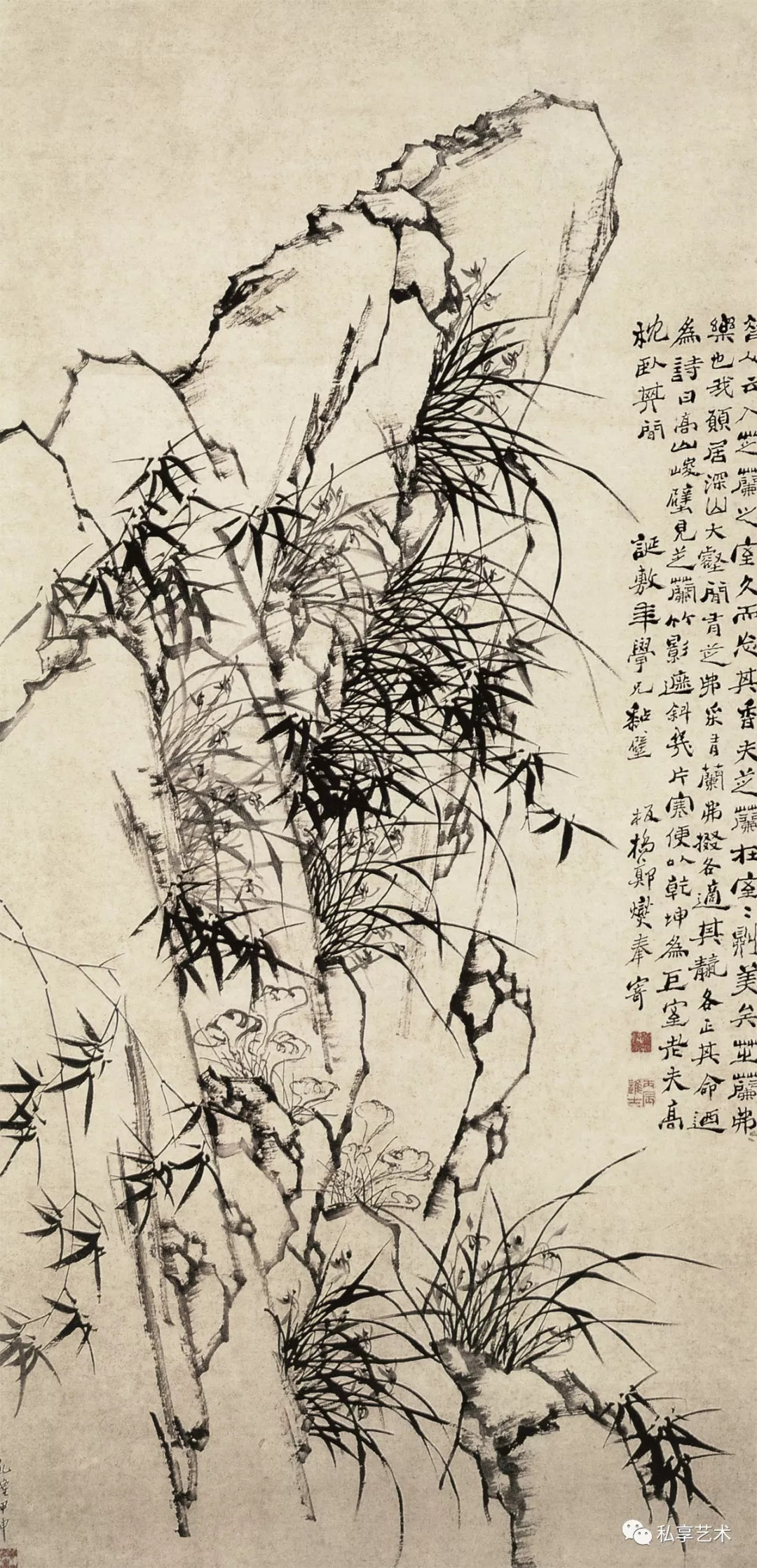 清 郑板桥 竹石幽兰图 天津博物馆藏