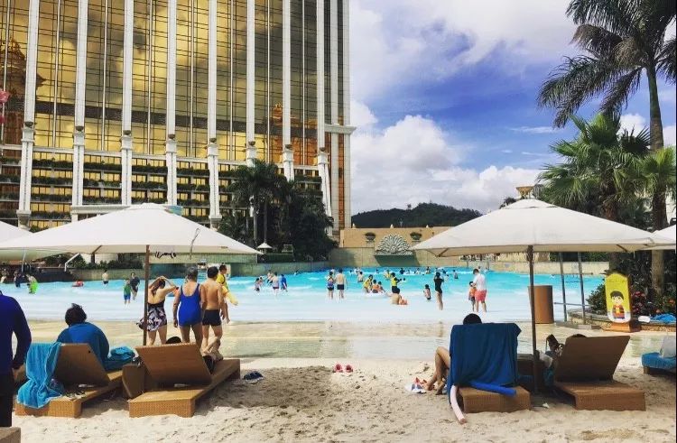 度假村里还有一个在小红书上爆火的水上乐园——天浪淘园,拥有全球最长575米空中激流,三条高达九米的滑水天梯,150米白沙滩和儿童水上乐园及儿童游泳池。如果不住在度假村内,游客买一张门市价468澳门币的门票也能进哦!