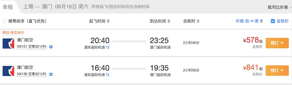 查了一下上海直飞澳门的机票,即使是在热门的端午节,单程含税最便宜的只要500+,闭着眼睛都能入手。