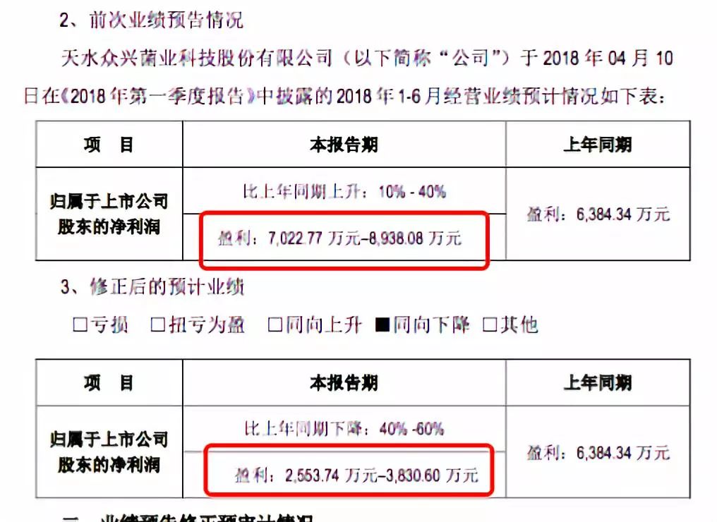 如今,金针菇又让一家来自甘肃的上市公司众兴菌业(002772,SZ)突然业绩“变脸”。6月20日,众兴菌业下修半年度业绩预告,预计公司上半年净利润同比下降40%~60%,预计净利润2553.74万~3830.6万元,而在2018年一季报中其预测实现净利润超7000万元,两者差距至少为3000万元。对此,众兴菌业解释称,是因公司第二季度金针菇销售均价出现不可预见的低迷。