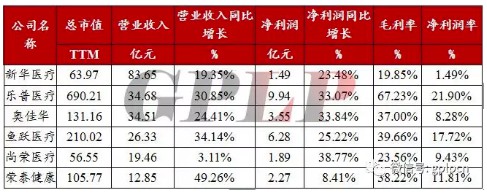 2015年至2017年,除了新华医疗和奥佳华以外的其他四家上市公司的营业收入均保持20%以上的CAGR增长。其中奥佳华的净利润的CAGR最高,达到约40%。