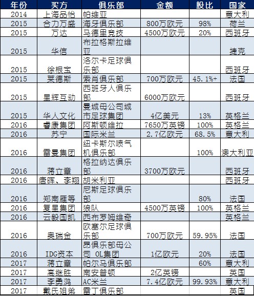 赞助之外,中国资本更是积极参与到全球各大联赛中,过去3年中资已染指海外超过20家俱乐部,涉资超过20亿欧元,其中不乏AC米兰,国际米兰,马德里竞技,曼城等欧洲豪门。