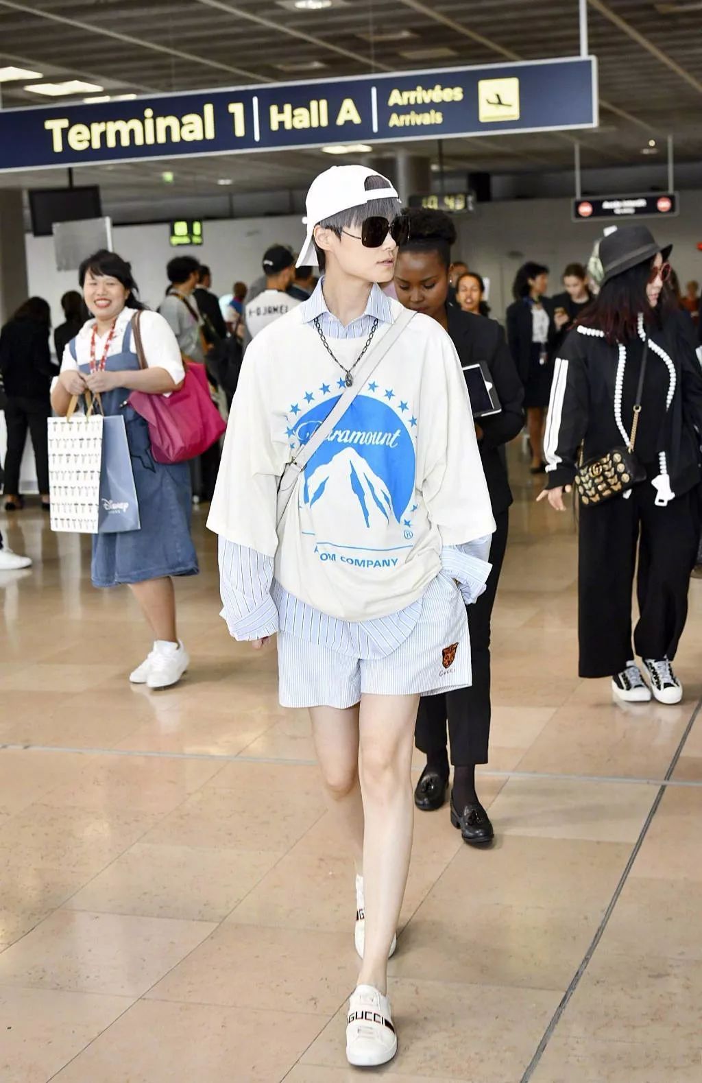 周冬雨用一件跳色爸爸裤拯救了一身沉闷的搭配,虽然她身高不过160cm,但是完全不显腿短!