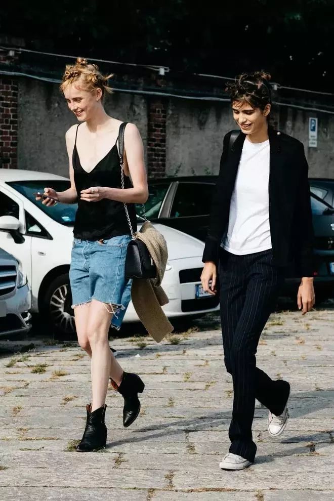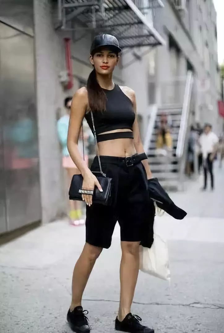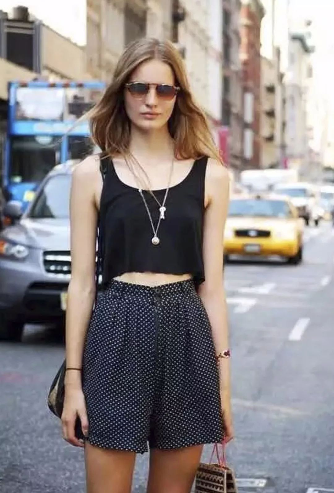 如果懂得用短款背心+高腰爸爸裤,那么这条街上你的腿最长。