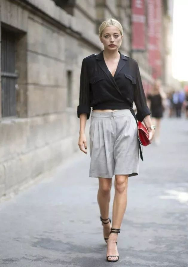 当爸爸裤遇上了一字带凉鞋,有种优雅帅气结合的时尚感,再加上裙裤LOOK,非常有味道。