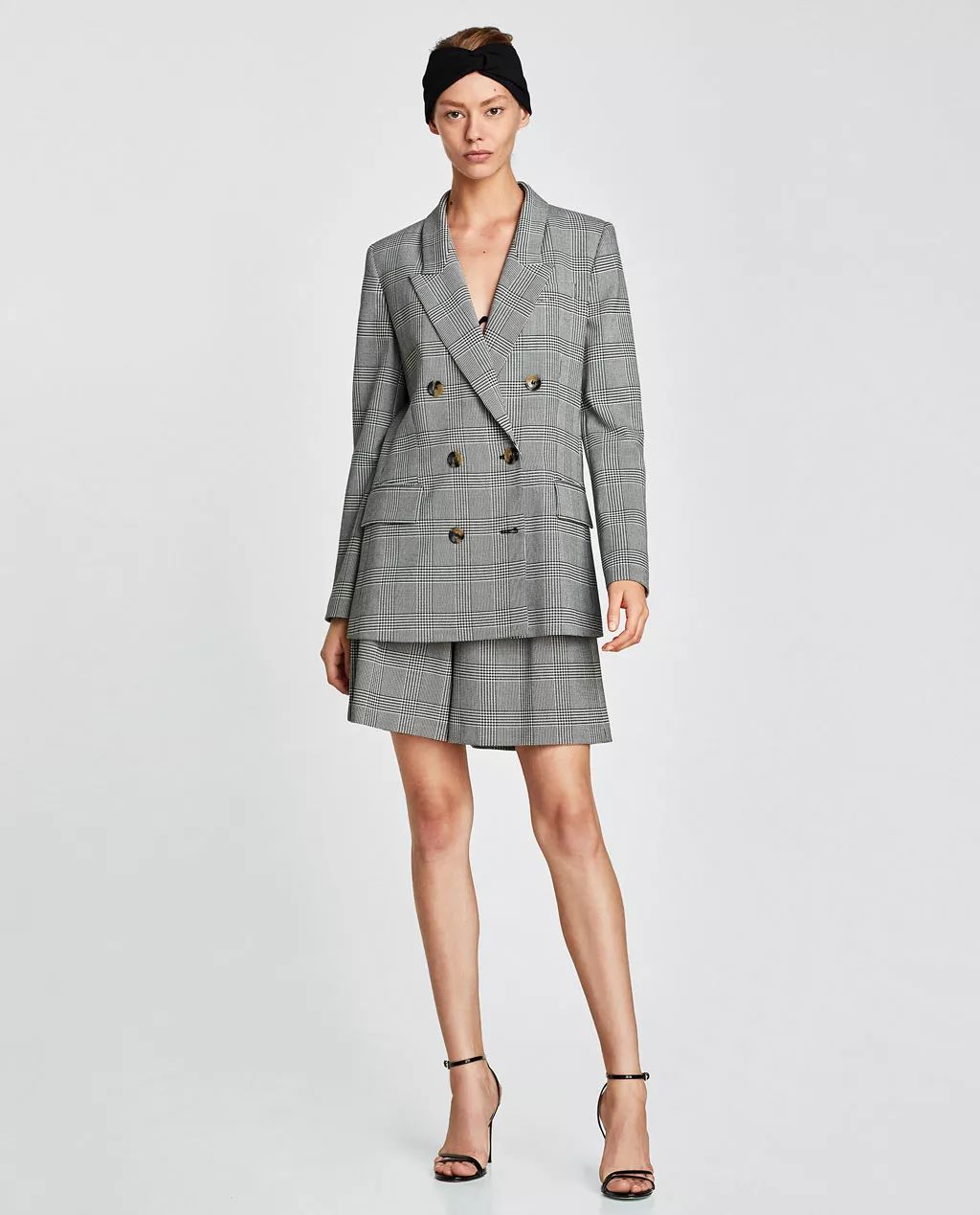 格子元素也是今年大热的复古元素,再带有裙摆的英伦风爸爸装套装会给女生一种大大的包容感,简单衣兜可以双手插袋。保持帅气的同时,又柔化了西装的硬朗。给人一种随便穿穿就很时髦的不羁态度。