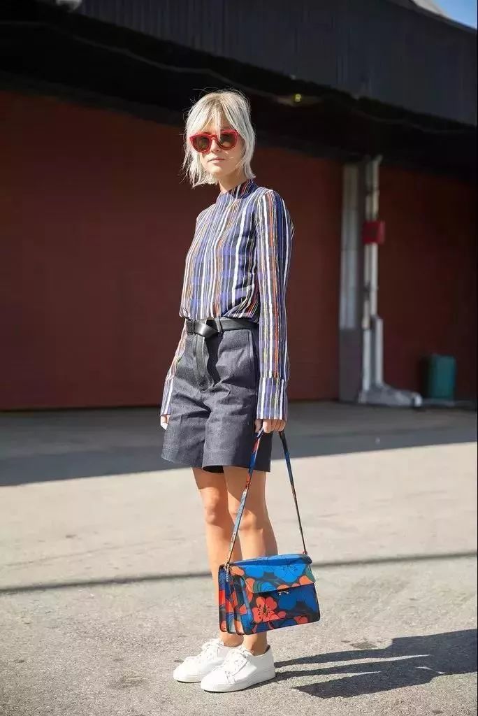 倍受上班族青睐的条纹衬衫,彩色条纹色彩饱满更加成熟,浅色条纹看上去则低调清爽。作为通勤装必备,搭配爸爸裤更是气场满分!