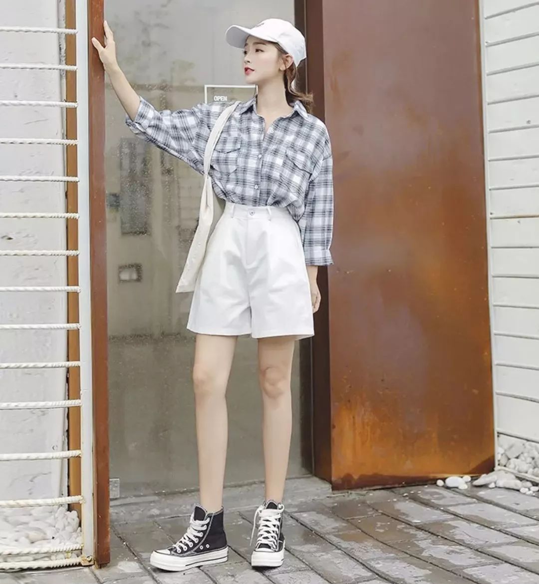 最难穿好的格子衬衫,都可以搭配爸爸裤试一下!让你秒变ins潮人。当然裤子颜色要选好,米色、白色的就很OK。