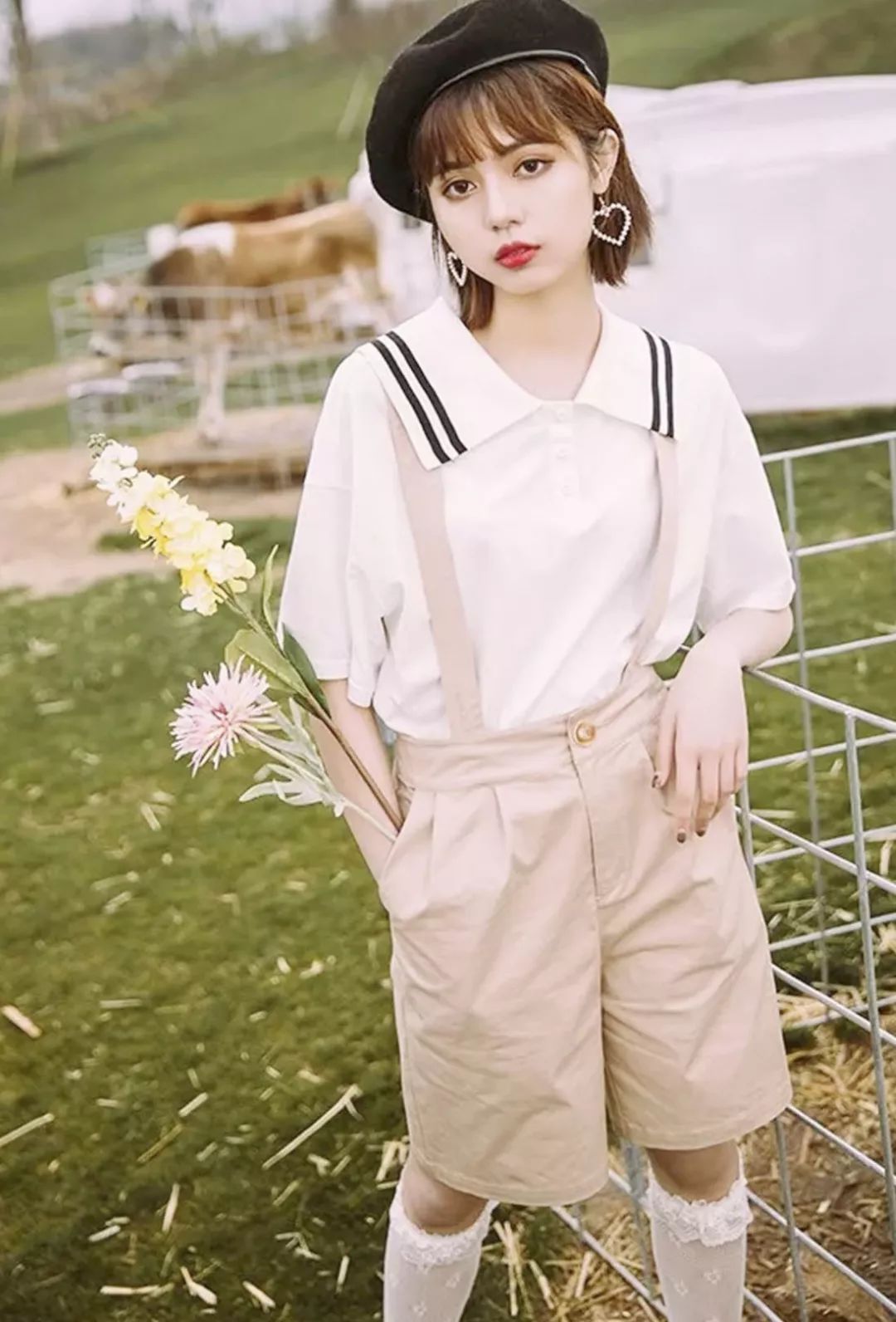 给爸爸裤加上两条背带,这种改良版背带裤还挺复古俏皮的。搭配海军领上衣,甜man结合,你就是最时髦的小仙女。