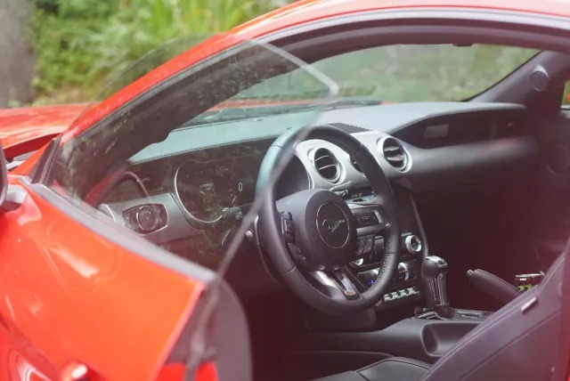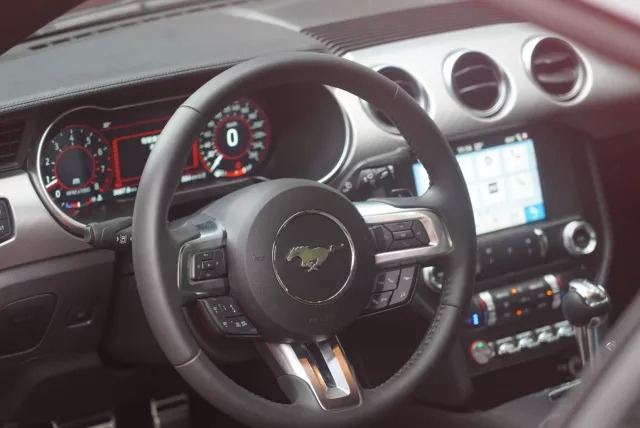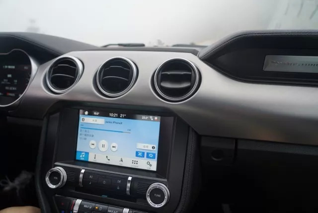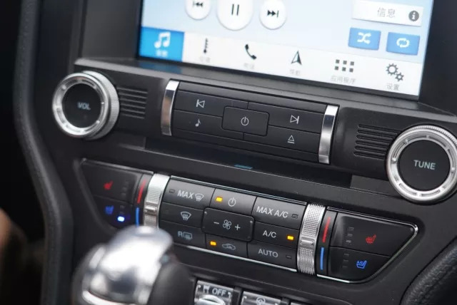 进入车内,2018款Mustang并没有对设计布局进行过多地改变,包括飞机拨片式的拨杆能轻易让人爱不释手,软材质的覆盖和饰板的搭配增加了更多高级感。而最大的改变是福特首款12英寸液晶仪表盘的应用,它首先拥有相当丰富的界面功能和自定义选项,而且界面设定相当便捷,还提供各种不同的颜色设定——光是这个12.3寸仪表盘都可以玩一整天的感觉。