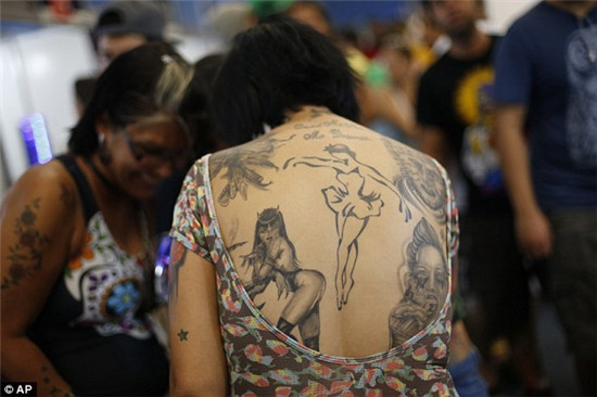 来自葡萄牙的纹身爱好者Priscilla Santos说:“因为我丈夫是一位纹身艺术家,我可以好好利用他的特长。”