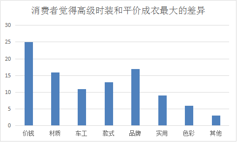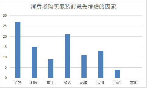 从问卷调查统计结果发现,多数人都听过名牌女装品牌,但极少数人会买价格昂贵的名牌女装,但多数人认为价钱是购买服装最重要的因素,大多选择平价女装,认为便宜、实用最重要,而消费者觉得名牌女装与平价成服最大的差异也是价钱,所以购买服装前需依自己的能力所及做选择。