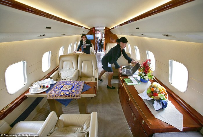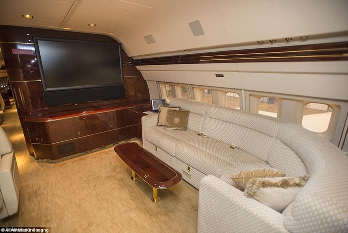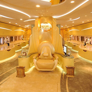 8. 飞机内部摆有宽敞的双人床、配有软沙发的阔大休息室、内部纯金配饰和大理石浴缸,只要你能想到的奢华它都有。