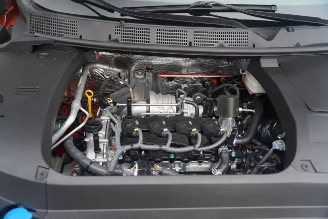 随后进入连续爬坡路段,这对动力的要求一下就上来了。但是我们即便在D挡模式,只要深踩油门变速箱就会迅速降挡,拉高转速后发动机的扭矩会很快爆发,那种推背感是相当明显的。在短暂的激烈驾驶中,1.6TGDI的动力输出痛快、降挡有力,油门响应和动力储备都非常好,涡轮全开后的滋滋声也会变得明显,战斗感很强。