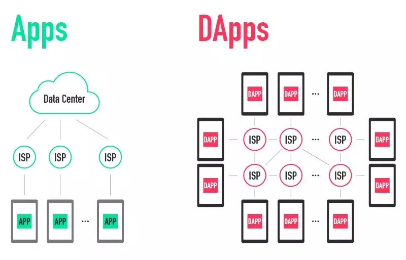 DApp是部署在区块链上的去中心化应用,DApp之于区块链,就像手机App之于操作系统。以太坊是目前最主要的DApp平台。
