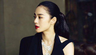 高圆圆的脸棱角没那么分明,但她的下颌也是偏方的,扎头发还挺好看,但感觉不如把头发放下来有辨识度。▼