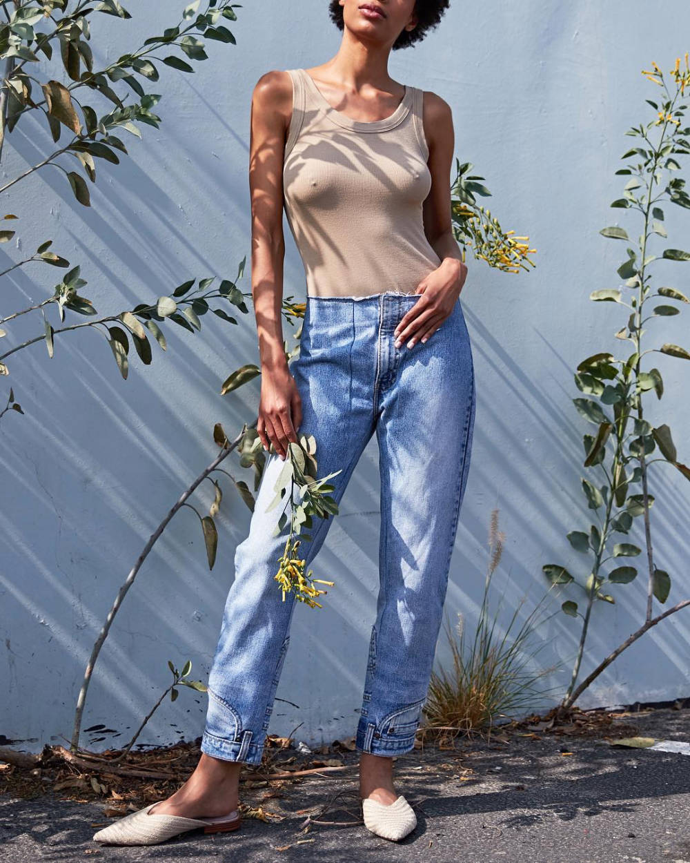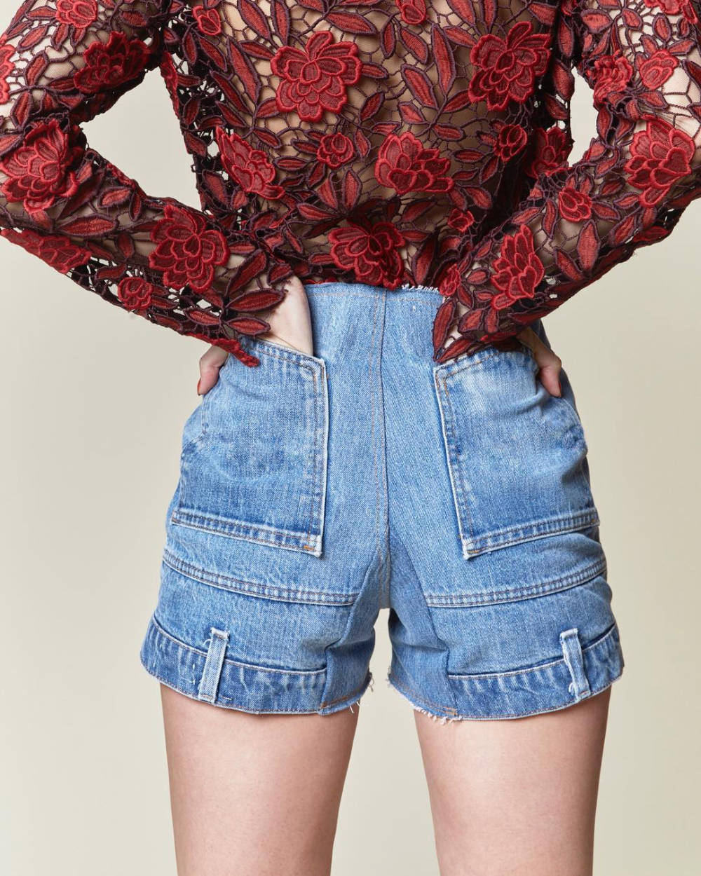 CIE今夏主打“颠倒”牛仔裤,设计概念和这个创立于去年夏天的品牌一样活泼年轻。六款牛仔裤单品中,五样都采用了“颠倒概念”,牛仔裤的上端被移至下摆,正常的裤腰部分则通过设计将拉链藏起来。乍一听有些奇怪的颠倒设计,穿到身上视觉效果却意外的很不错。必备牛仔裤的夏天,来一条别出心裁的“颠倒”款,回头率百分之百。