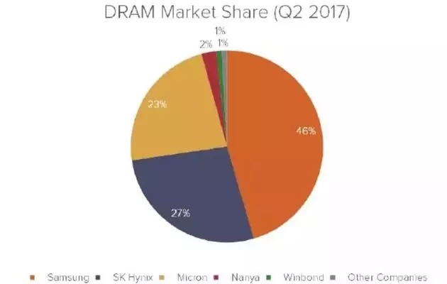 有人认为,这一波涨价就是三星、美光科技以及海力士三家新品公司主导的。因为,这三家公司占据了全球DRAM内存芯片市场96%的份额,其中,美光科技一家就占了23%左右。