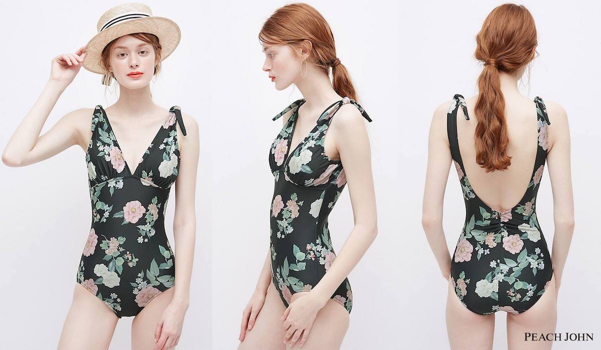 据《女装日报》报道,日本内衣品牌蜜桃派(PEACH JOHN)在2018年的游泳衣系列中推出了一系列在背面装有褶裥设计的泳衣。除了在背部设计出了较大的开放空间外,腰部的褶皱还给人以紧缩的视觉效果,而最特别的是,它的设计意图是希望能够使人的视线从臀部转移到背部上,以此来解决当今女性对于自己身材的一大烦恼——臀部下垂。