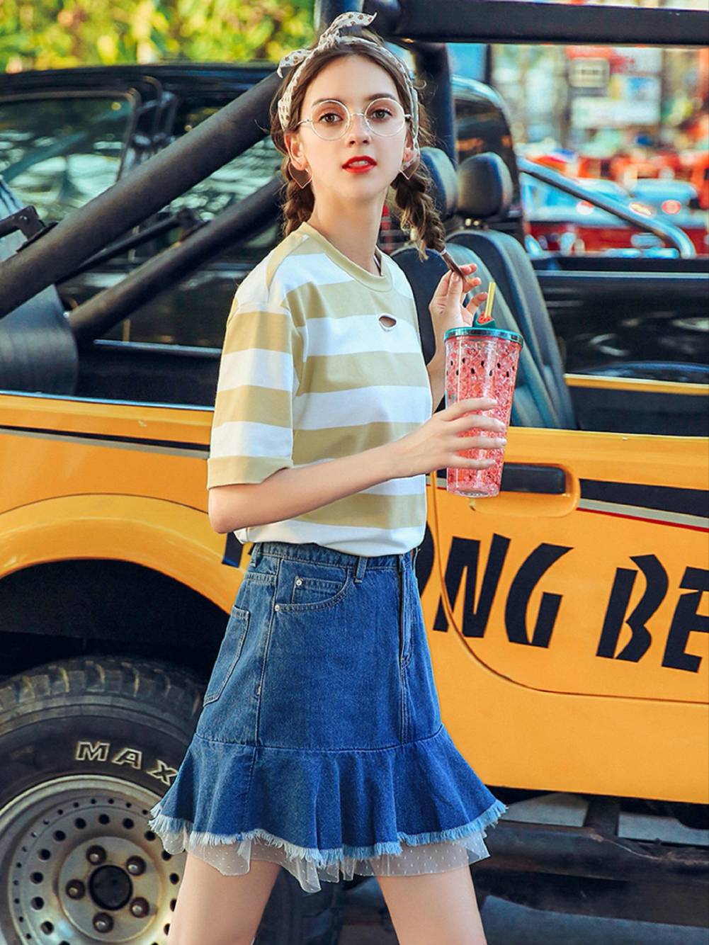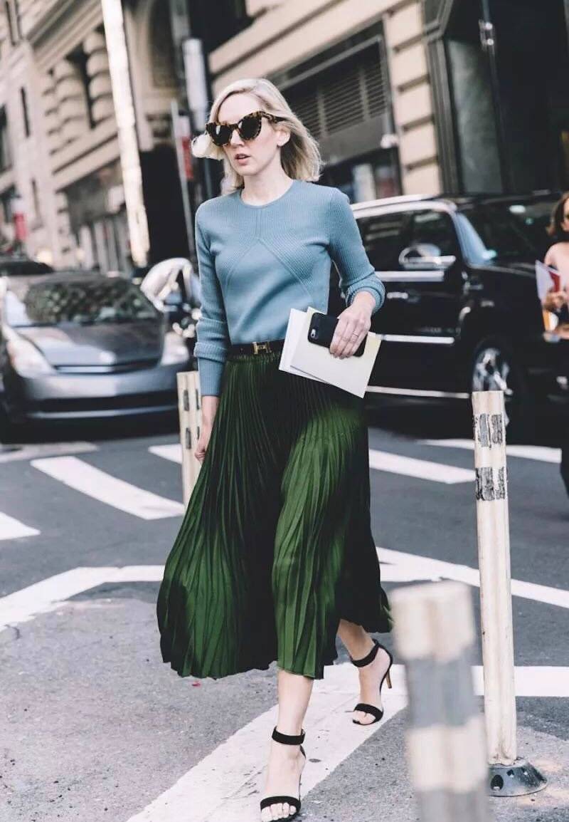 相反,上宽下窄的V型臀则更适合百褶裙,一些带有装饰物的裙子也可以很好的转移视线,综合身材上的一些不足。
