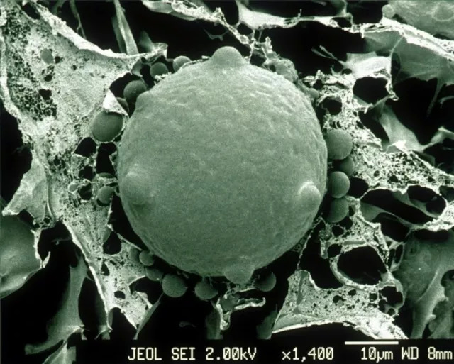 扫描电镜下的蛙壶菌(图片源自维基百科)