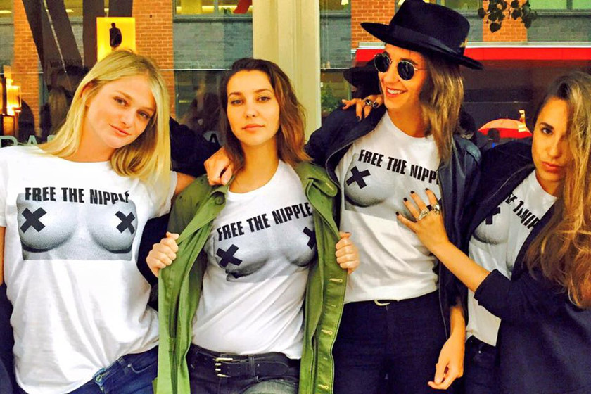 在社交媒体Instagram上,曾经有一个名为#FreeTheNipple的话题,该话题获得了许多知名人士的支持,包括喜剧演员兼主持人Chelsea Handler、歌手Miley Cyrus以及模特Naomi Campbell)等,不过很快,在2015年该话题就被强制禁止,并以应用的年龄评级为12岁为由,删除了所有女性发布的裸露乳头照片。