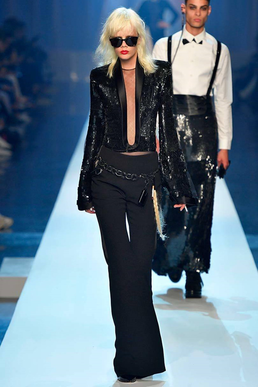 “你可以看到乳头和珠宝,但你不能触摸,”他补充道,“我并不是说女性一定要袒胸露乳。相反,我其实很喜欢紧身胸衣和胸罩。”这一点在他曾经的设计中也有所体现,比如说,当年歌手麦当娜著名的锥形胸衣就是由Jean-Paul Gaultier设计的。