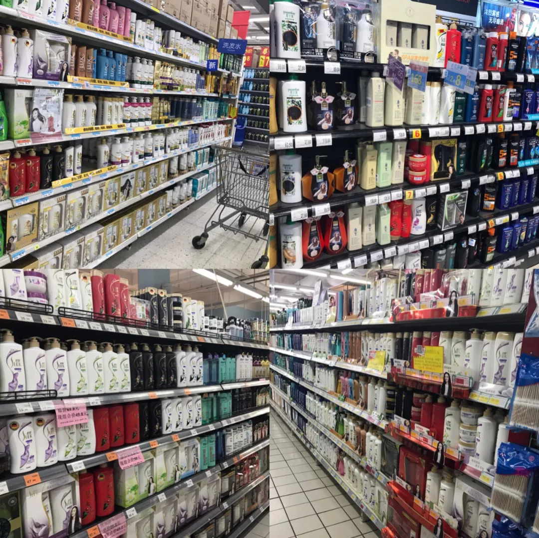 以武汉市场为例,师姐走访徐东沃尔玛及洪山广场家乐福店发现,舒蕾洗护发产品的排面均被飘柔、力士、清扬、海飞丝等品牌强势挤压,仅占据单个货架的三分之一。另外,其SKU数也均为个位数,且多为洗发产品,较少涉及护发产品。
