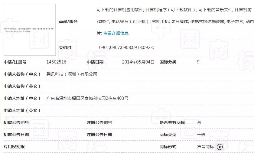 至此,腾讯公司“滴滴滴滴滴滴”声音商标被核准注册。