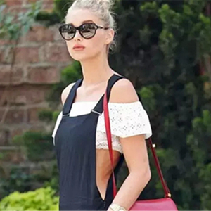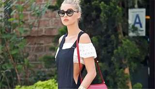 这种短上衣很多人不知道怎么穿,像她这样配背带裤是个不错的选择,不会过于暴露,又有点chic。▼