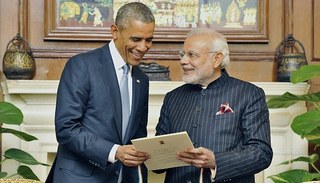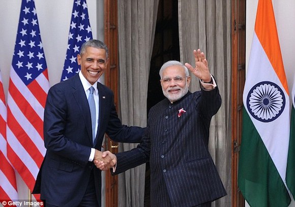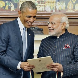 据英国《每日邮报》报道,奥巴马无论走到哪里都被光环笼罩,不过此次会见印度总理莫迪(Narendra Modi),却被后者所穿的暗色金条纹套装抢尽了风头。