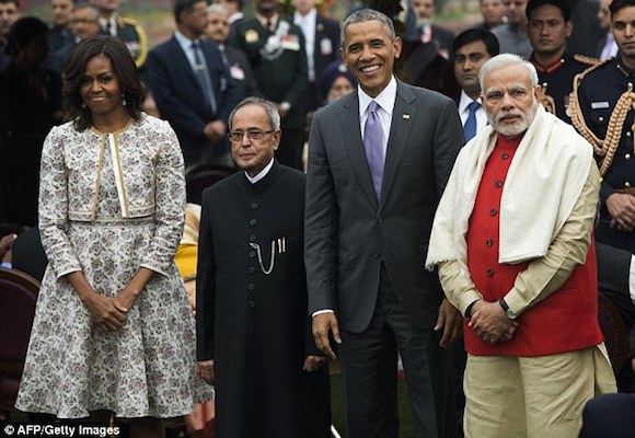 不过,奥巴马却大(xin)方(sai)地在欢迎国宴上盛赞莫迪的穿衣风格,将其与穿着优雅的米歇尔相提并论。奥巴马说:“他很坚强,而且有他自己的style。”他还说,“我们美国有家报纸是这么写的:‘米歇尔·奥巴马,让路吧。现在世界上有了一个新的时尚偶像。’”