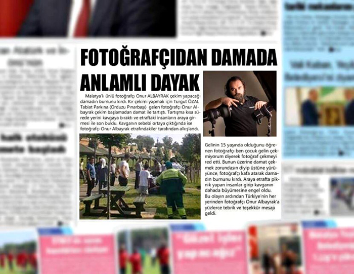 据报道,7月5日拍摄当天,婚礼在土耳其土耳其 Turgut Özal 公园举行,摄影师注意到新娘看上去不像成年人,而且能感受到她因为害怕正在全身颤抖。于是询问年龄,得知新娘只有15岁,便立即停止工作,并试图阻止这场婚礼。Albayrak 说:“我不能给童婚拍照。”新郎则愤怒的要求他履行拍摄合同。随后两人大打出手。