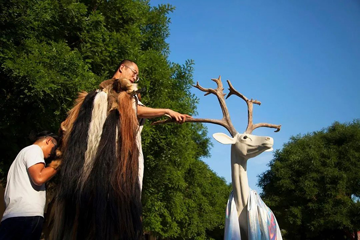 震旦博物馆携手当代艺术家邬建安、国家级非物质文化遗产项目代表性传承人汪天稳,交融远古神话、历史文物、非遗传承、当代艺术,激荡不寻常的火花,创造了“仙人的树林”,展现传统文化基因中活跃的艺术能量。可以说,高古文物是夹带了大量神话信息的载体,民间美术传承了远古神话的记忆碎片,当代艺术家重新诠释神话再创造,三大维度的共同交集是“神话”,也正是“仙人的树林”之核心。
