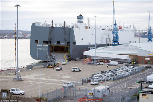 1月27日,停靠在南安普敦码头的Hoegh Osaka开始卸货。