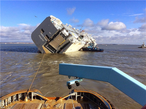 在离开南安普敦港口45分钟之后,在新加坡注册的“Hoegh Osaka”号汽车运输船就搁浅了,全部25名船员获救、2人轻伤。这辆运输船长180米,宽32米,除了豪车外,船上还装载了农业和建筑工厂的机器,包括超过30吨的石材切割机。