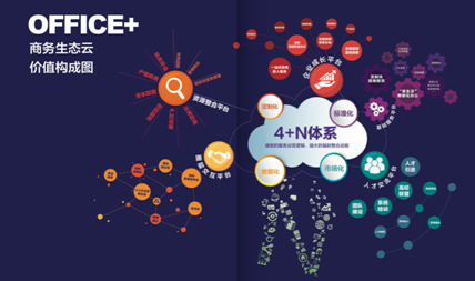 2016年,企业平台完成基础功能建设后,OFFICE+品牌正式问世,并陆续添加以企业服务为根基的服务内容,不断裂变,加速生长,在完善价值的同时,以点带面,不断扩张,实现OFFICE+的市场化路径。