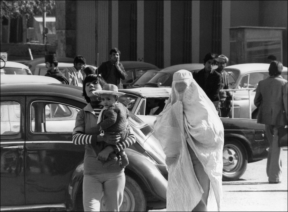 同样拍摄于1981年的喀布尔。女人可以选择自己的装束。街边的橱窗也颇有商业气息。