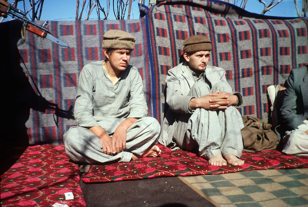 一张拍摄于1981年9月的照片。两个前苏联士兵被阿富汗反抗军抓住。这两名俘虏告诉当时的记者,他们将因为拒绝皈依伊斯兰教,不能在伊斯兰法庭审讯而被处死。这样的照片在摄影技术发达的今天反而不多见了。法新社驻阿富汗首席摄影师 Shah Marai 生前曾说,他必须用纱巾将手上的小相机包裹住藏起来,不然被塔利班士兵看见会非常危险。Marai 小心翼翼,却还是在今年4月30日,在一次针对媒体的自杀式爆炸袭击中丧生。