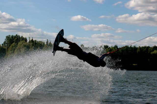 所谓花样滑水,就是滑水者利用各种手拉、拖绳或脚拖绳等方式,完成转体、跨越拖绳、空翻等动作。花样滑水是滑水运动竞赛项目之一,和花样滑冰一样,极具观赏性。而新西兰的罗克斯堡位于但尼丁和皇后镇之间,坐落在克鲁萨河的河岸。罗克斯堡湖位于小镇上游几公里处,坐落在庞大的罗克斯堡水坝背后。向亚历山德拉方向延伸近30公里,这里湖水清澈风景宜人,是滑水、划皮艇和帆船运动的极佳场所。