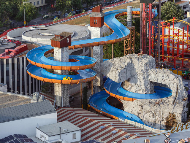 巴西的Rio Quente温泉公园是南美惟一一家拥有热水的水上乐园。热水游乐园中最激动人心的项目是恐怖的Xpirado,这个娱乐项目包括一座 31 米的高塔、一个 142 米长的滑道,和一个平均速度为 8.3 米每秒的斜坡,线路最后会将游客带入一片湖区,湖里到处都是水下杀手和饥饿的食人鱼。另一个项目是巨型滑道,游客需要在充气环中滑下 22 米的宽滑道。这里的U形线路、波浪泳池和儿童游乐场都非常好玩,水是温的,场地舒适开阔,每个人都能找到适合自己的项目。