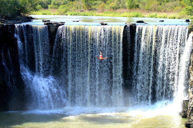 还记得电影《神话》中,成龙为解梦境之谜,邀请饰演科学家的梁家辉前往梦境中的大瀑布,并且冲破瀑布急流到洞中天宫,找寻梦中情人金喜善的情景吗?这就是瀑跳!位于湖北省宜昌市秭归县泗溪生态旅游区的三吊水瀑布落差389米,是三峡地区落差最大的瀑布,也是近年来发现的亚洲落差最大的瀑布之一。瀑布自海拔884米处分五级飞流直下,称之为五叠水。瀑布飞流拍岸,气势夺人。