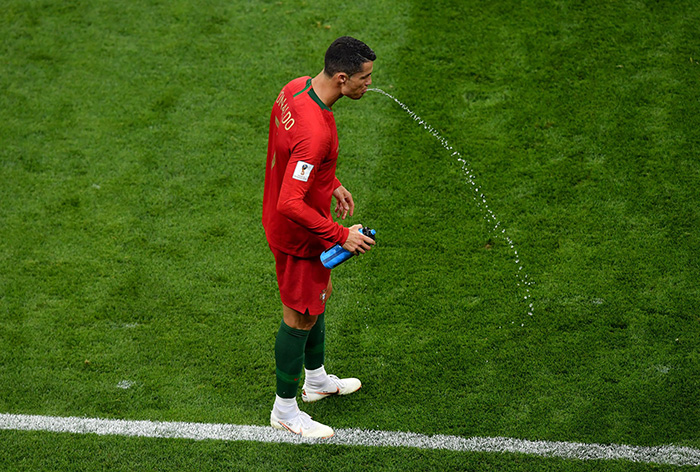 半决赛同克罗地亚队的大战,其他的一些英格兰球员也有类似的做法:在比赛后段表现有所下滑时,利用间歇时间漱口,然后把口中的水吐出来。还不仅如此,你在其他球队的球员身上也能看到这样的场面。葡萄牙球星克里斯蒂亚诺·罗纳尔多在比赛中也会喝水之后吐出来,而他吐出的液体轨迹在空中犹如一串摩斯电码。