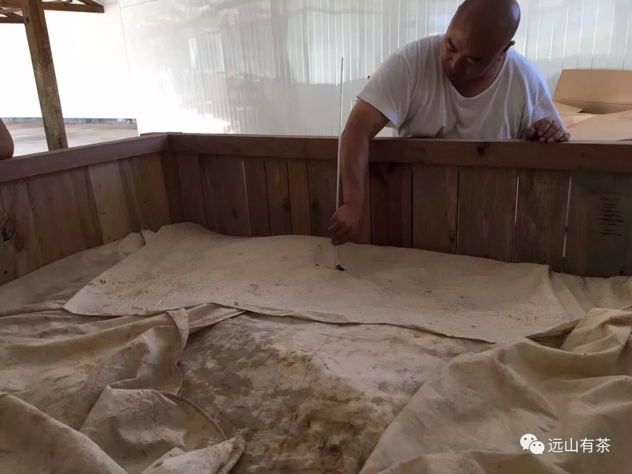 再后来,2016年开始就有竹筐发酵,分大竹筐与小竹筐。再后来,就是木箱与木框发酵。基本上200公斤的晒青毛茶已经可以发酵了。