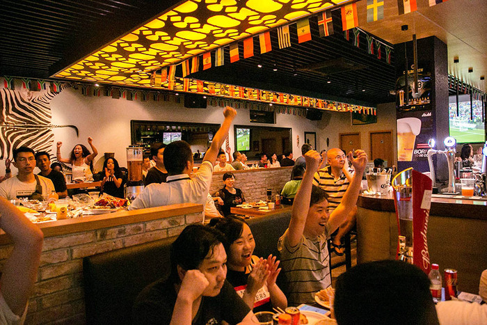 6. 由于前来观看决赛的人众多,善于把握商机的餐厅纷纷开始设置最低消费,从人均200到300元不等。尽管价格不菲,但每家店依旧火热爆满。