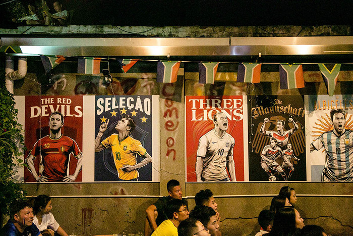 9. 餐厅墙上贴着各个国家队的当家球星的海报。