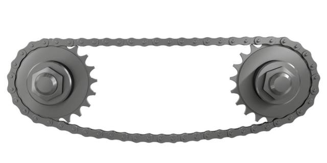 传统的链条传动系统包含八个滑动摩擦点,会产生很大的摩擦力,并且随着链条的磨损,摩擦力会越来越大。