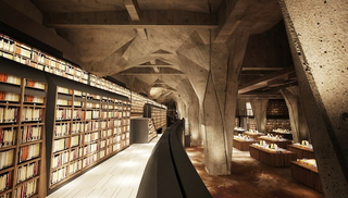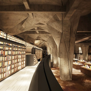 在这个占地约4000平方米、跨度100余米、37根哥特式造型切面立柱,两倍大小于广州店的空间里,借鉴藏经阁概念设计的廊桥书架装满了近15万册图书,首创儿童美育空间“小方所”,并延续了广州的复合业态,但无论在体量还是数量上,都更加丰富。