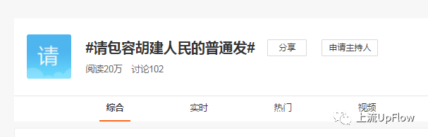 ▲微博“包容胡建人民的普通发”话题有20万阅读